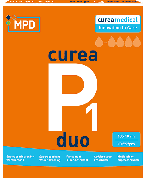 curea P1 duo kann von beiden Seiten auf die schwach bis stark exsudierende Wunde appliziert werden. Vor allem, wenn es im klinischen Alltag schnell gehen muss, werden Anwendungsfehler reduziert, da die Wundauflage sowohl mit der Ober- als auch Unterseite absorbiert und ein „falsches“ Auflegen ausgeschlossen ist.